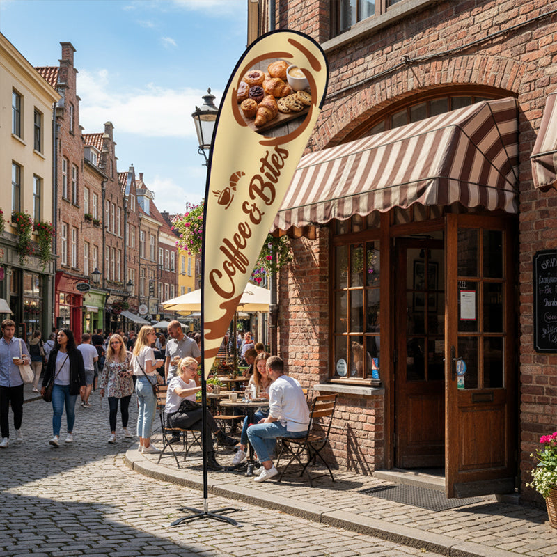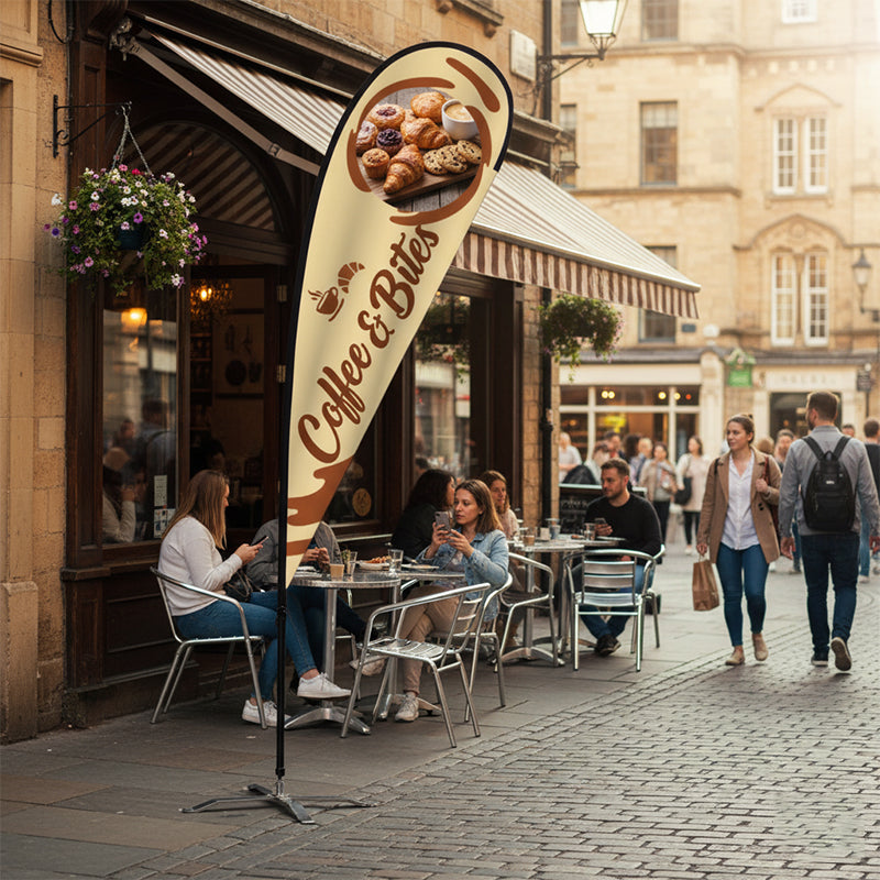 - Height: Approx. 15 ft (tall teardrop format) – far above standard flags, delivering maximum visibility